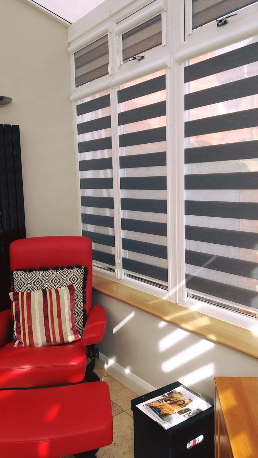 You can still choose from many of our other blind types, so you can still choose pleated, venetian, day & night, roller blind and blackout fabrics, but they are just made to sit within their own frame. And naturally when we bring our showroom to you, you’ll be spoilt for choice in terms of colours and fabric designs.